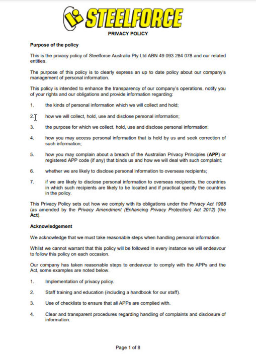 Steelforce Privacy Policy
