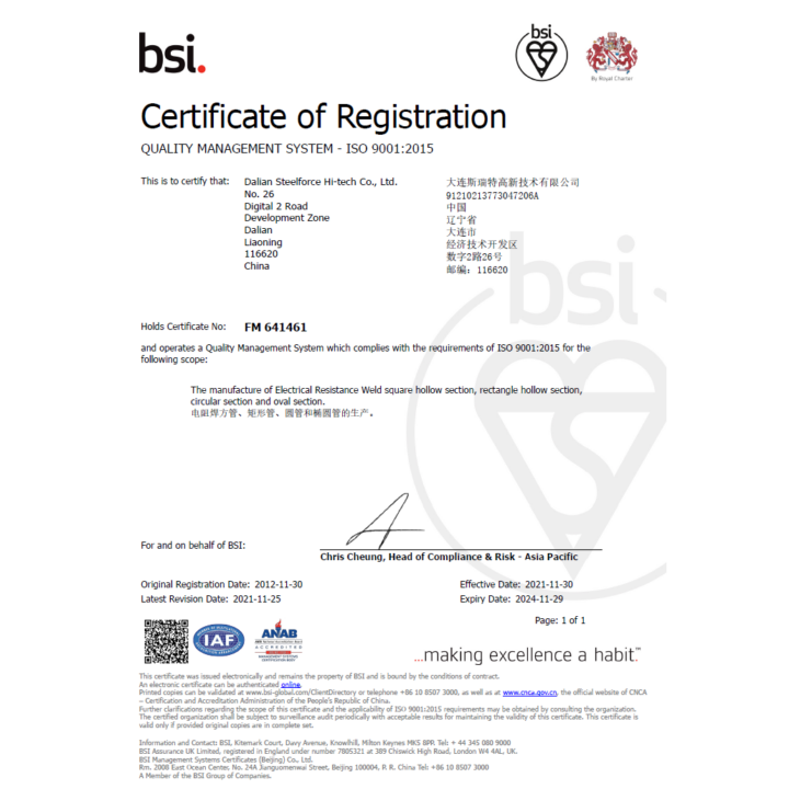 Steel products supplied by Steelforce is sourced from leading manufactures. The compliance and certification available below is developed by our manufactures and complied by Steelforce and speaks to the quality of our steel tube, pipe, merchant bar, structural steel, and more.